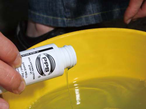 初期用來保護軍用雷達漆面的PPS,後來終於被開放可使用在航空機具、車輛與建築物等漆面防護上。一共分為兩劑,第一劑是一種特殊的介質溶液,將第一劑依1:70~75的比例倒進溫水裡稀釋,然後用洗車海綿將第一劑塗抹於車身上,等15分鐘之後自然風乾(一定需超過15分鐘),再用水將車身洗淨並擦乾,此時不僅徹底清潔車身,也在烤漆上形成億萬個帶正電荷的表面分子。將第二劑倒在上蠟海綿上依照上蠟的方式均勻塗抹於車身上,約15分鐘後用乾淨的布進行拋光即可,由於第二劑為帶負電荷的鐵氟龍陰離子,因此會有如磁鐵一般正負極相吸的原理,讓鐵氟龍融入烤漆之中,達到PPS電極化漆面保護的效果。