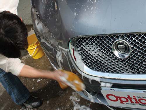 | 用洗車海綿把第一劑均勻塗抹於車身上,簡單說就是、車再洗一次 |