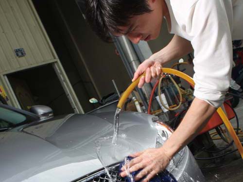 | 用水管與乾淨的布將車身洗淨並將其擦乾 |
