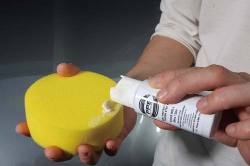 | 將第二劑倒於上蠟海綿上,操作方式與一般上蠟相同 |