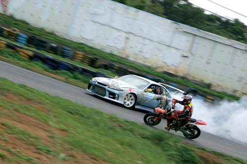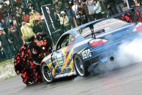 | No.5精心安排午間表演 OP盃的午間表演絕不是隨便找幾台甩尾車來現場漫無主題式的「青菜」秀兩下就可以過關的!2009表演經典回顧「舞獅鬥甩尾」、「滑胎鬥甩尾」、「方程式勇破龍潭單圈」、「精英盃大獎賽」…每場表演都引起話題熱烈討論! |
