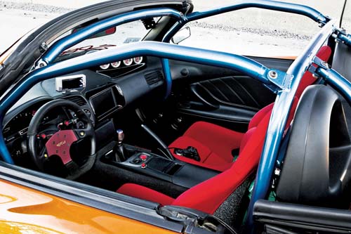 對S2000這類敞篷車而言,防滾籠在競技中具有絕對必要的存在價值,安裝於座椅背後的四點式防滾籠,主要是防止翻車後無車頂結構,直接壓死人,對一般喜好山道走行的車主已經夠用。而7點式防滾籠則建構了一個完整的頂部架構,不只能抵抗車輛翻覆時的重壓,甚至要將車身在翻滾時的衝擊傷害減到最小,保護車台受到過度嚴重的傷害,是純正競技部品。