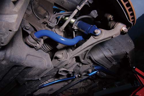 即使車身前後配重達到完美比例50:50的S2000,負荷著引擎重量的車頭,在彎中仍會產生高於車尾的側傾力,因此為提昇操控極限,改裝強度更高的前下防傾桿,變成為極具效果的做法。而經過Cusco的計算,將前下防傾桿韌性提昇至原廠之172%,後防傾桿提昇至136%,是最恰當的程度。