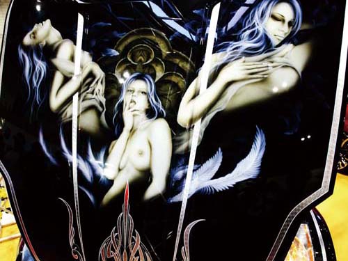 | 除了萌系的動漫人物外,也有愈來愈多限制級露點圖案出現在痛車上的趨勢,彩繪著這圖案到處走不知道會不會被開妨礙風化的罰單 |