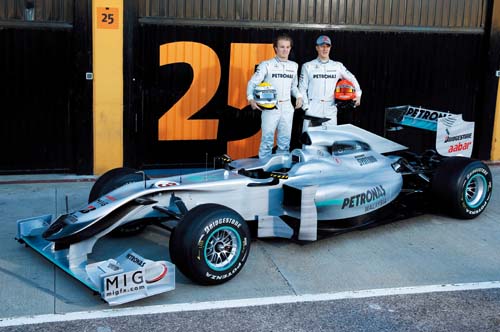 | M.Schumacher(右)的復出、搭配Mercedes成立完全廠隊,搶盡了所有德國媒體的版面。 |