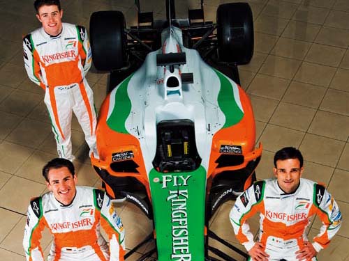 | Force India由於使用Mercedes引擎,今年被安插了該廠所培養的新人P.diResta(左後)擔任備位車手 |