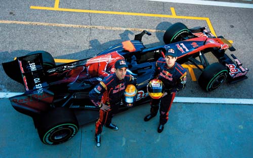 | Toro Rosso今年的賽車設計與Red Bull脫鉤、不再「共用車身」,因此搶在母隊之前發表、並先行上路 |