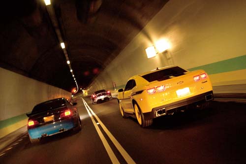 五代目Camaro SS在停車場時筆者就一直在等待它何時會變型,那純正美式的肌肉線條跟讓人印象深刻的電影,筆者已經無法保持中立態度來看帶它,因為它實在太迷人,座艙內藍紅色的高亮度儀錶就好像大黃蜂的眼睛般看著你,而6.2L的Camaro SS絕對不好惹,拖車頭般的54.5kgm扭力搭配6.2L的大排氣量,只聽見V8引擎隆隆巨響後,這個大傢伙就瞬間射出,龐大的身軀、俐落的加速真的令人覺得它是否真是依照外星生物打造而成,相較於430及大黃蜂,M3的動力及排氣量似乎都吃盡苦頭,不過這位女性車主更展現出壓倒性的操控能力,一路上都能緊緊咬住它們。