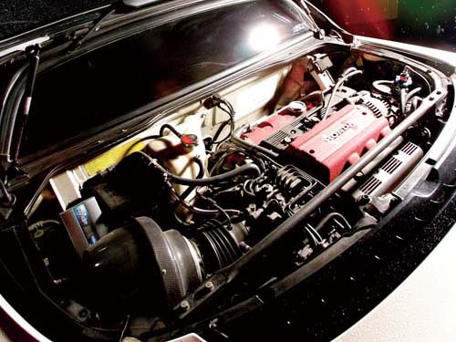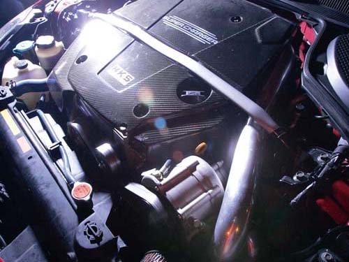 日系軍團這裡在超過480hp的R35帶領下,地面依舊能感受到不平凡的震動,HKS TI在油門全開時,鈦合金特有的共振聲的確有力拼F430的高亢爆音,GR6型變速箱輕輕撥動撥片車輛隨即衝出,四輪傳動更展現出壓倒性的瞬間加速能力,同屬日產系列的350Z,3500c.c.的排氣量也算是小有份量,在HKS機械增壓的壓榨下,382hp/52.7kgm的動力搭配隨傳隨到的機械增壓,踏下這輛火紅350Z的油門瞬間就消失在筆者S14的眼前,而日產FM?Package的底盤概念,也因此成就了Z33絕佳的平衡性,前53、後47的車身配重,任何人都可輕鬆上手。