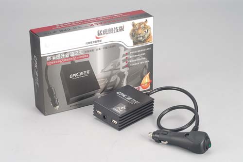 使用白金類貴金屬奈米化高導電金屬陶瓷材料Ultrapack作為主要元件的CPK車力王12V汽機車電源管理器,它是簡單利用插入車內點煙座橋接電瓶使汽車電路系統提供一個高功率與穩壓(穩定全車電力系統)環境,並能活化傳導體中原子內部之電子,使自由電子更具活潑性,在引擎功能上有效改善點火波形,進而優化火星塞點火時間,提高行車電腦與電控系統、各感知器的訊號準確度,讓引擎汽油燃燒效率獲得改善,不僅減少有害廢氣排放同時也實現降低油耗。