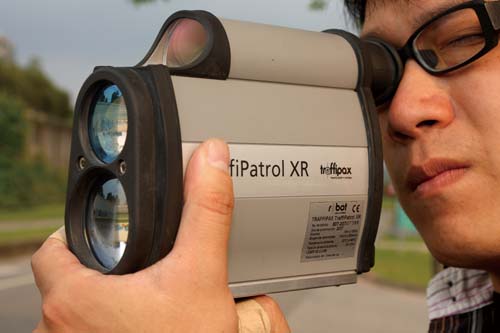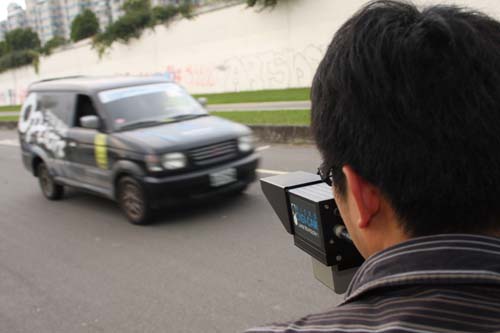 雷射測速槍LIDAR Gun(Laser infrared detection and ranging)在0.3秒內(含數次驗算)即可測得車輛的速度,但為了做到「瞄準單一車輛」,使用者須手持雷射槍朝特定車輛射擊雷射光,無法像雷達只要開機後就能持續測速,所以雖然雷射紅外線的射程超過1000公尺,但實際有效範圍,會伴隨著操作者的視力略有差別,而正常人的肉眼可見範圍約300公尺。此外,雷射槍比雷達厲害的地方,在於這類光學系統除了用於測速外,也能輕易換算點與點之間的距離,因此常被警員從橋上往下發射,用來取締未保持安全距離的違規者。