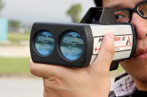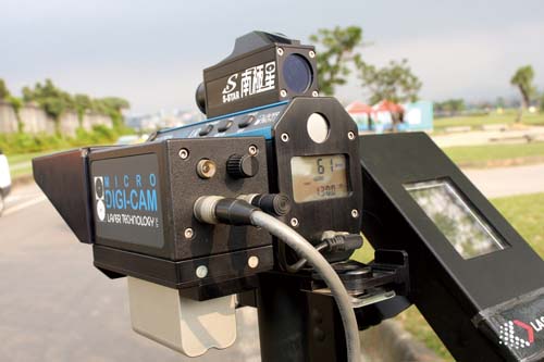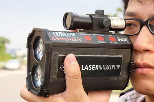 而雷射測速器的雷射光,光束擴散率很低(射程×0.03~0.05),也就是說,當距離300公尺時,光暈直徑約只有90公分;200公尺時,光束直徑約60公分;100公尺時,光束直徑約30公分。所以能做到「瞄準單一車輛」的偵測範圍,讓違規者無從狡辯。其作用原理,是利用「發射光」與「反射光(接收光)」的時間差,來換算目標物的距離,並利用每秒幾十次的不斷發射、接收,算出每段距離所耗的移動時間,而有了距離和時間後,便能算出速度。