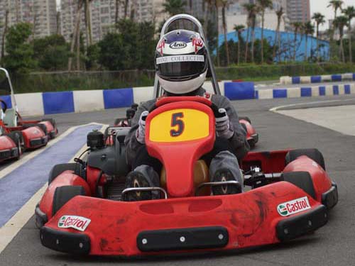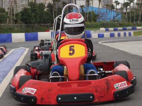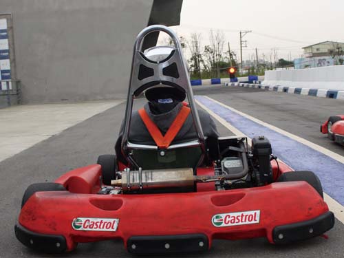 女生的部分當然是交給Irene囉!大致上來說,注意事項與男生類似,不過仍有些細節需要特別注意。首先當然是不要穿裙子來玩Go-Kart囉!穿裙子不僅容易發生危險,你也不希望裙襬飛揚讓自己曝了光吧。坐姿對於女生來說格外重要,因為女生的身形多為嬌小,坐進卡丁車裡不僅左右搖晃、雙腳也不夠長,雖然可使用抱枕塞進左右邊與背後,但是切記別墊太高,以免身體超過座椅側面,完全失去固定身體的功能。