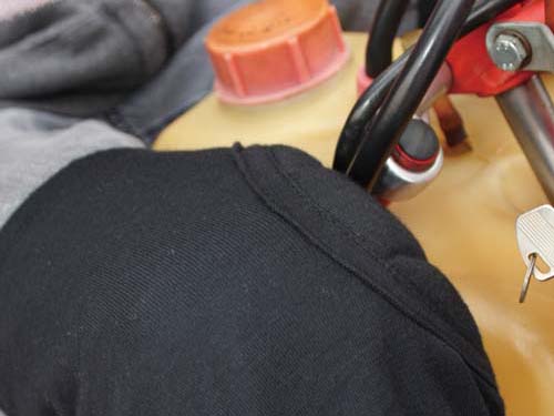 | 膝蓋一定要緊夾住油箱,才能防止身體左搖右晃,所以要戴上護膝才不會瘀青 |