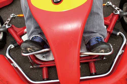 安全帽是駕駛Go-Kart時對安全的要求,這個部分卡丁車場都會準備,為了衛生都會另行準備頭套,安全帽的穿戴不宜過鬆、以免晃動造成危險。坐上卡丁車之後要讓背部能夠緊靠椅背,雙腳要能夠將油門與煞車踏板踩到底,因為卡丁車的座椅是固定無法前後移動的設計,所以如果有雙腳無法將踏板踩到底的情形時,卡丁車場有準備抱枕讓你墊在背後,這點要特別注意,否則煞車無法踩到底、無法讓卡丁車減速是非常危險的事情。