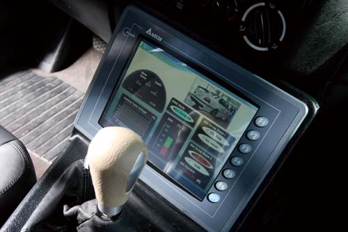 | 此一大型的觸控式螢幕主要用以擷取行車時的系統資訊,當然也是台達電子的自製品 |