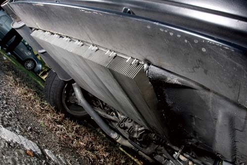 | 車底大量的散熱鰭片乃是供電池模組散熱之用,雖然結構簡單但卻能有效協助電池保持在工作溫度之內 |