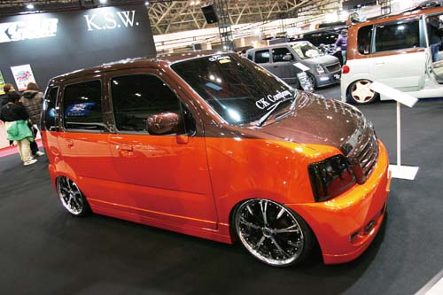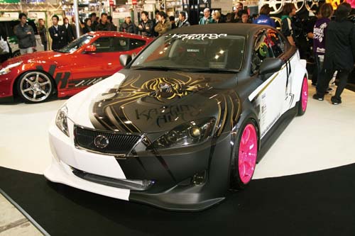 除了上述所介紹的視覺系改法外,從烤漆的變化上著手也是視覺系改裝車常見的手法,不過如何擺脫過去的伎倆,創造出新式的烤漆技巧則考驗著Tuner的智慧,從這次車展中不難看到,日本當前的烤漆技術似乎較偏好於雙色烤漆,尤其是採用對比極為強烈的兩個顏色相互搭配更是常見,另外採用油膩感極厚重的金油層烤漆技術,也是這次展覽的重點之一,不論採用何種技巧去塗裝自己愛車上的鈑金,所呈現出來的質感與視覺上的享受都是過去從未體驗過的,就讓我們透過照片來與大家一同分享吧。