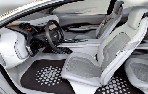 Ray Plug-in Hybrid Concept全車採用輕量化、可回收的環保材質打造,車頂六角型的太陽能電池與玻璃天窗相結合,提供電能給額外的照明設備與空調系統使用,原廠驕傲的「宣稱」說:Kia Ray Concept的最大續航里程可以達746miles,換算就是超過1000公里!