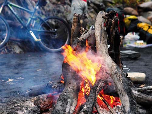 夜裡雨勢不算大,對於生火還不算太困難,升起一把營火在營帳旁享受這山野的氣氛也有世外桃源般的感受,雖然這趟行程真正騎車的距離很短,但各種路況都有體驗到,也算夠操了,夜裡真的很好睡,只是;半夜發現帳篷滲水,趕緊又爬起來將帳篷移往天幕之下,又折騰了好一段時間,看來下次出門要換一頂帳篷了。