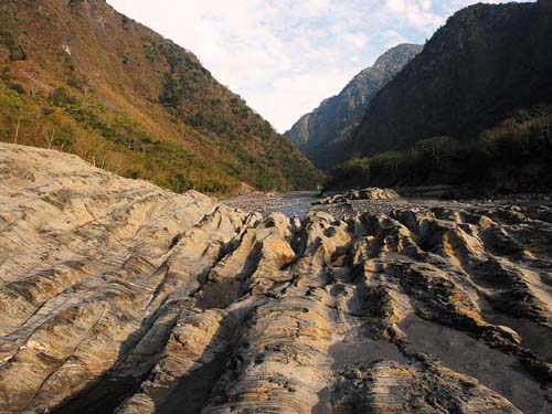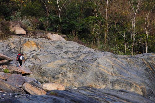 地理特色:溪床沿途景觀粗獷,砂質溪床與岩石混合地形 。