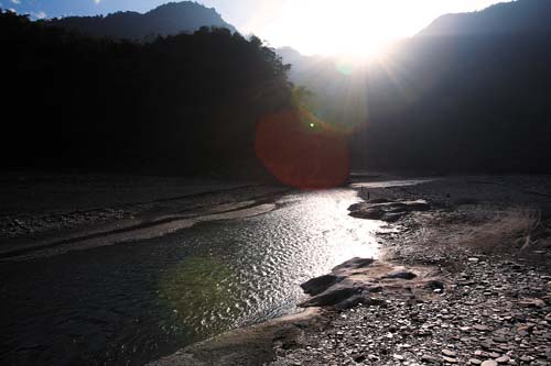 | 溪床二側到處都有開闊的營地,紮營很方便。 |