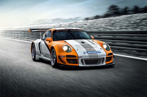 在2010年的日內瓦車展,Porsche祭出超強猛藥:911 GT3 R Hybrid,從圖中看來、此部Porsche是一部「正港」的賽車,但是可別因為它是油電混合動力、就看不起它,既然要用來比賽,Porsche為它配備了足以超越所有對手的系統,首先保留4.0L水平對臥六缸引擎、擁有480hp的最大馬力,重點來了,Porsche在前軸放了兩具可產生60kW功率的馬達,並透過放在副駕駛座的一組飛輪發電機驅動,成功取代一般油電混合動力所使用的電池,如此一來油耗可以降低,油箱不用裝那麼多油可以減輕重量,對性能的增進有莫大的幫助。此車將在德國紐柏林賽道進行長時間的測試,也可望參加5月15日的Nurburgring 24小時賽事,Porsche也計畫參加2010年的24小時LeMans大賽。