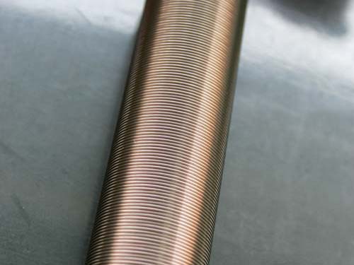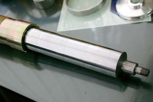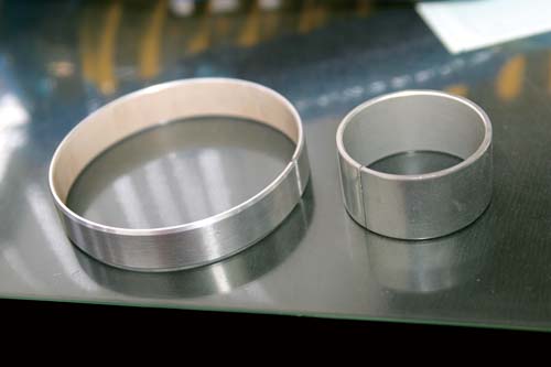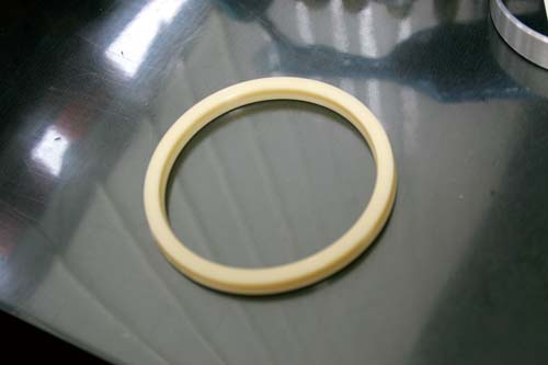 | 這就是減震筒內的自潤軸承,介於筒身與筒芯之間便於筒芯順暢作動,左邊就是飛機用105mm的規格,由此可知飛機用的筒身有多大支 |