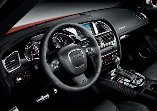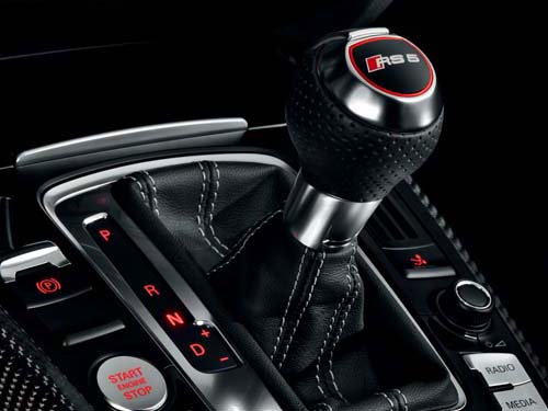 七速S-Tronic變速箱乃是RS5的標準配備,雙離合器變速箱已是相當成熟的設定,然而為了對應V8引擎強勁的動力輸出,此一變速箱也經過相當的強化,透過Audi Drive Select系統,還可切換Auto、Comfort與Sport三種模式,此外也一併附上Launch Control功能。