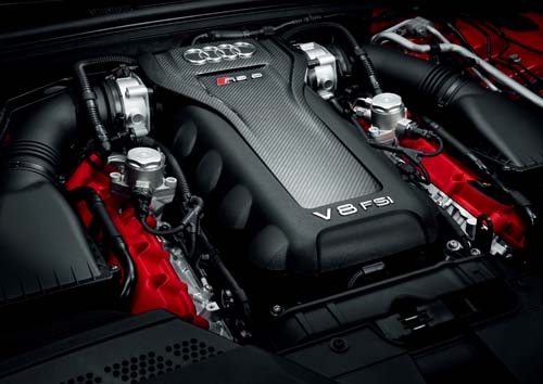 Quattro GmbH對這具引擎進行了相當程度的改良,尤其在進氣方面更是竭盡所能降低阻力與提高進氣量,此外,刻意講究低摩擦阻抗的機件設計與表面處理,更是讓這具引擎在高轉速時有如賽車引擎般從容;根據Audi方面提供的資料顯示,RS5的最大動力輸出為450hp/8250rpm、43.9kgm/4000~6000rpm。