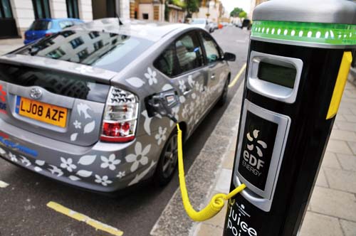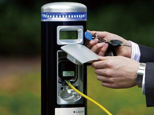 | 未來的用車環境將是充電站隨處可見,且可利用「悠遊卡」進行充電付款的動作,與現行繳付停車費的方式相同 |