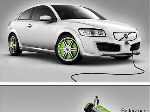 | 所謂的「Plug-in Hybrid」就是在原本加注燃油的機構外,增設「充電插頭」、利用外部電源對補充電池電能,藉以增加「純電動行駛」的距離,如此便可大幅提高燃油經濟性。Volvo DRIVe系統亦採相同原理,預計在2012年發表的「柴油Hybrid」系統,其純電動行駛距離將高達96公里、性能十分出色 |