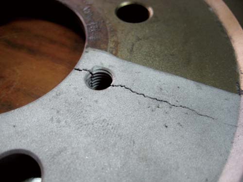 | 浮動碟發生變形時會從材質較軟的鋁合心中心盤開始,像圖中的中心盤就是設計不良的結果 |