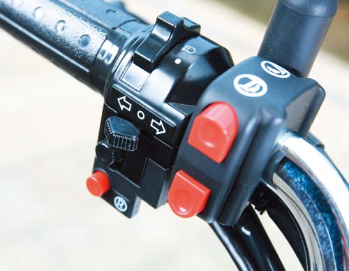 | 位於左把手的「駐車開關」與「倒車檔」,對於體型纖弱的女騎士而言,這兩項是最貼心的設備 |