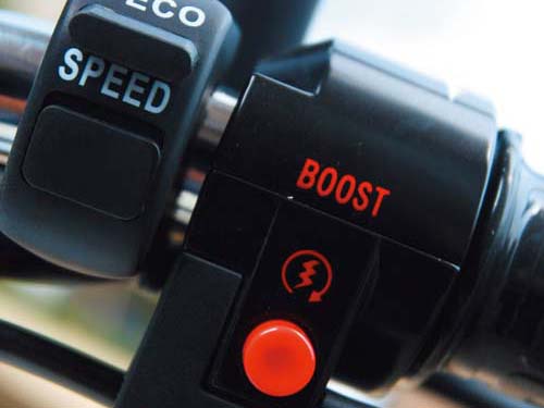 | .「瞬間加速系統,Boost」、「定速巡航裝置」、「Eco/Speed」均位於油門把手之上,凡與速度有關的系統通通在這裡!清楚易懂 |