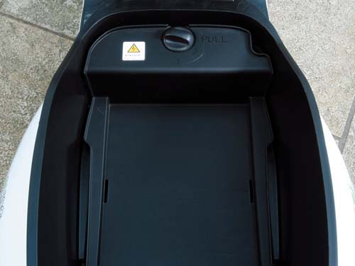 | 坐墊下方為雙層設計,平常可用來放置安全帽,而長途行駛時則可以再放置一顆「備用電池」,將續航力延長至80km |