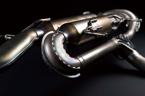 | 鈦合金是近幾年熱門的輕量化材質之一,擁有比鋁合金更輕的特性,Nissan GT-R Spec-V便採用鈦合金製作的排氣管來減輕重量 |