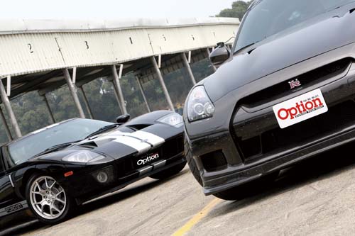 而看到國外媒體(包含國內)總是喜歡拿GT-R去挑戰997 Turbo或GT2,Option不願隨波逐流而了無新意,恰巧適逢AAI收藏一部國內數量並不算多的純種美式超跑~Ford GT,而且日前還剛從美國引進一系列道路版升級套件(文後介紹),使得改裝後的馬力輸出也逼近600匹,於是GT v.s GT-R的六百匹異種格鬥戰役便得以成形。
