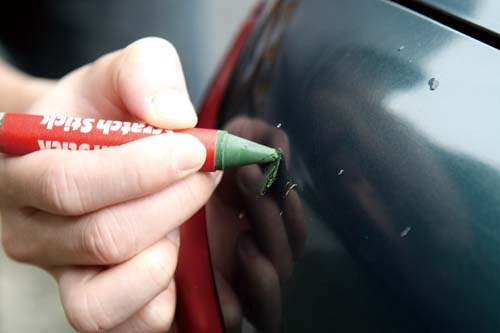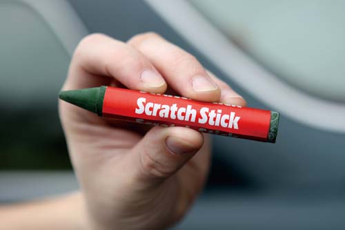 Carplan所推出的Scratch Stick補漆筆是蠟筆型產品,由於是固體蠟設計,所以不會有垂流的問題,同樣先把車身洗淨,並將水徹底擦乾,此產品可以迅速遮蓋傷痕、防止生鏽,不過此產品不能取代板金或噴漆修補等方式,而且補漆筆是有分車色的,購買時要特別注意。