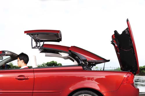 | 三片式的頂篷開關時間約30秒,其中Volvo多層次的隔音設計,讓C70隔音效果有著良好的水準。 |