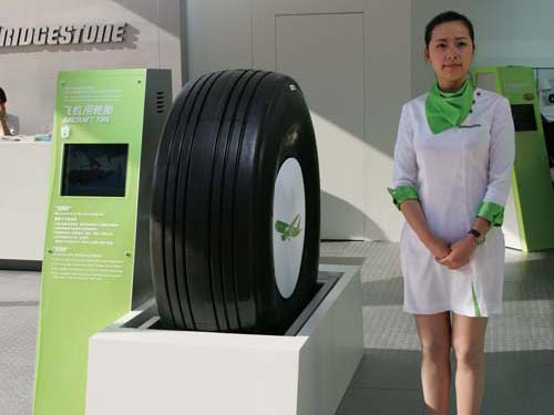 致力於開發高經濟、高性能與安全防爆胎的Bridgestone,除了展出第三代防爆胎持續在高級車市場中推廣之外,現場還找來平時極為少見的超大尺寸飛機專用胎,除了直徑幾乎達到半個人高度之外,在僅有的輪胎接觸面積下要完成飛機起降的艱困任務,對於輪胎品質與安全耐用度更是不容馬虎。