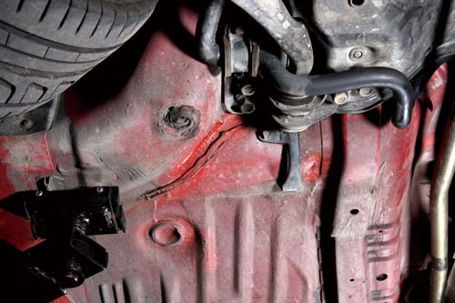 再來就是三門喜美後門原廠鈑金膠會因為老化導致密合度差,雨水如果大量沖刷容易導致備胎部分積水,這點似乎更是所有「掀背車」的痛,底盤部分喜美則是還滿強壯,較容易出問題的點並不多,一般車頭部分因為施力及擠壓點的關係,內規原廠接合點部分很可能會產生小裂縫,另外車尾較常見的就是牛腿橡皮的老化龜裂,最後筆者認為相當重要也是一般人或店家容易忽略的一環,那就是底盤部分原廠會有兩塊鈑金銜接的設計,而底盤更是容易因為積水或是大雨將水濺上,因此雨水就有可能停留在那個接縫中,當愛車少開少移動時,水也當然也不會自己排出,日子一長該部位就相當容易慢慢鏽蝕。