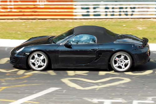 在數個月前的雪地測試之後,我們再度捕獲全新Boxster的身影,這次我們是在紐柏林跑道上發現這部車的蹤跡。與先前在雪地中進行測試的偽裝車相比,這次Boxster測試車上的偽裝也變得更少,最明顯的部份在於車尾下方的車底散流器,在先前的測試當中,這個部件一直覆蓋在偽裝之下,這回乃是我們首次見到它的真面目。