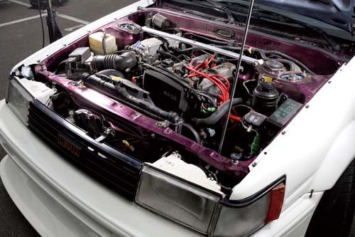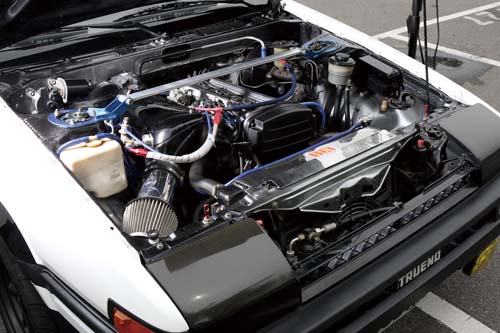 引擎本體部分採用AE111車型上20氣門的4A-GE本體,在壓縮比高達11.1及四喉直噴的加持下,1600c.c.排氣量依舊可壓榨出165ps/7800rpm、16.5kgm/5600rpm的最大出力,而20氣門的設計更是比一般16氣門還要精密,就連壓縮比的提昇來講,20氣門更必須顧慮到更多細部機件,也因此20氣門4A-GE的組裝程度更是相當精密,內裝部分則是採用原廠86座椅再加以重新編織及新品地毯的鋪成,而為了提昇操控手感也特別換上NARDI三幅式方向盤,另外冷暖氣的功能也完全保留下來,可說是相當快意的送豆腐式樣。