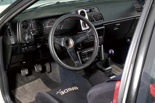 雙門雷賓的部分則為大為先前打造的自家用車,爆龜、專屬空力套件及深凹雙片鋁圈的搭配下,這輛雷賓所散發出的氣息更是相當運動化,打開引擎室更將大為那悶騷的個性展露無遺,白色的車身卻搭配上金蔥紫的引擎室塗裝,顯眼程度不需筆者多做介紹,而原廠4A-GEU狀況相當良好下因此就沒做任何變更,內裝部分更是在前車主的愛護下,大為幾乎就是維持購入時的樣子,僅換裝上BRIDE桶椅、NARDI方向盤及ARC鈦合金排檔頭來增添室內運動感。