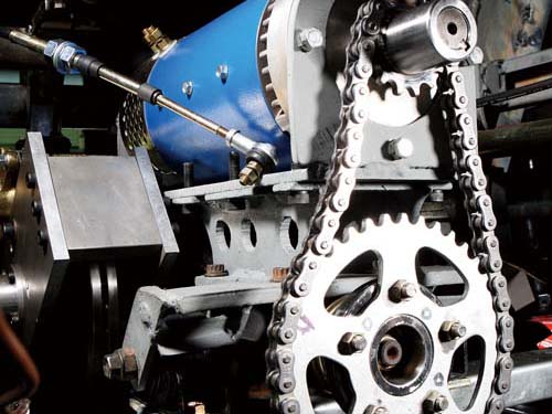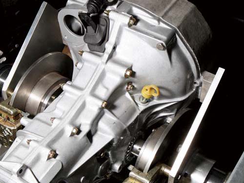 | 變速箱連接一具52hp馬力的電動馬達,變速箱的「獅仔頭」由柯氏汽車訂製完成,而下水之後的動力槳會連接於變速箱下方 |