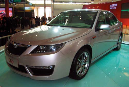 | 「地主隊」-北京汽車購得瑞典Saab汽車9-3、9-5的所有智財權,因此在會場上所展出的「C60概念車」,其外觀幾乎就是一部「中國版9-3」 |