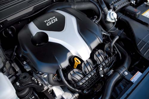 | 車展上同步發表的還有這具全新的2.0-liter Theta II缸內直噴渦輪汽油引擎(GDI),具備274hp的最大馬力與37.2kgm的頂級水準,同時最大扭力輸出自1800轉直至4500轉不墜,幾乎沒有Turbo Lag可言。搭配六速自排變速箱還有11.0km/L的平均油耗。此一引擎將會搭載在Sonata上,與Hybrid車款聯袂搶攻北美市場 |