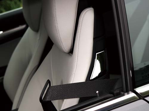 | 為了對應無B柱設計,E-Class Coupe的安全帶增加了特殊機構,開啟車門,進出後座時也不至於造成阻礙。 |