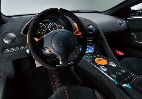 | 以大量麂皮與碳纖維材質所鋪陳的內裝加入了橘色車縫線、換檔撥片與換檔飾板的點綴,提高了中國限量版的獨特性 |